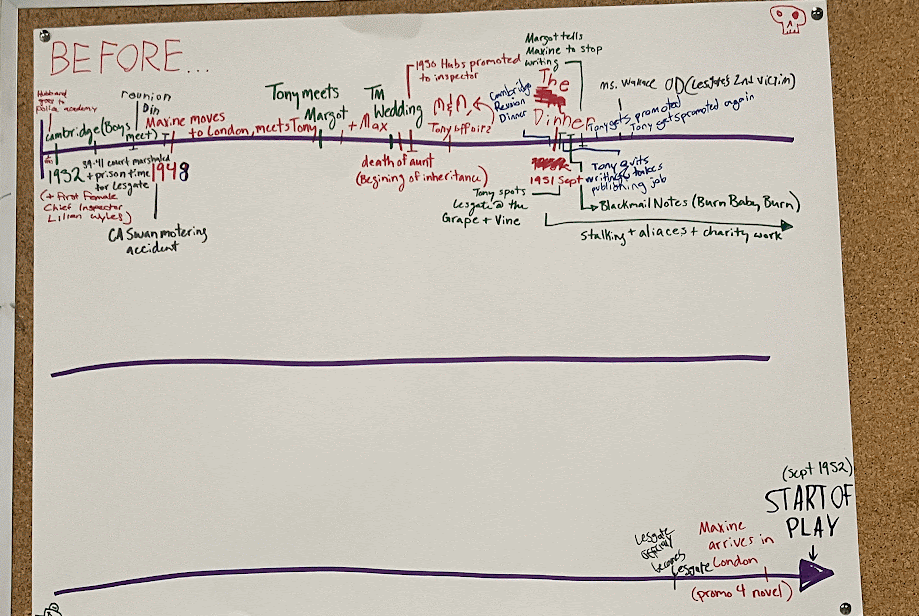 Tony and I have been married for several years. We are high status individuals in London society. We live in a gorgeous flat in Maida Vale, just across from the park. I love to walk through my private garden, listen to the bells of the church toll, and look across my window to the street and behind that, the park. To fill my days, I keep house and volunteer all around London while Tony works in public relations at a publishing house, the same company now promoting Maxine’s newest novel. I adore her thrillers. I love when she tells stories. It is the thing that she is best at and the thing that originally drew me to both Tony and Maxine. I love those who consider themselves to be creatives. I am drawn to the air of confidence that that requires. I wish that I possessed that trait myself.